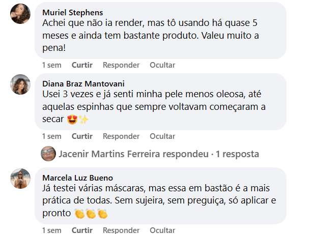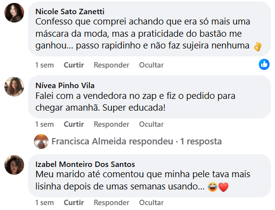 “Sempre recomendo a Máscara Bastão para minhas pacientes, pois é um produto 100% natural que ajuda a controlar a oleosidade, reduzir cravos e espinhas, desobstruir os poros e hidratar a pele de forma eficaz, sem causar irritações. Desenvolvida com base em princípios dermocosméticos seguros e testados dermatologicamente, essa máscara é indicada para pessoas de todas as idades que buscam praticidade, eficácia e cuidado diário.”
